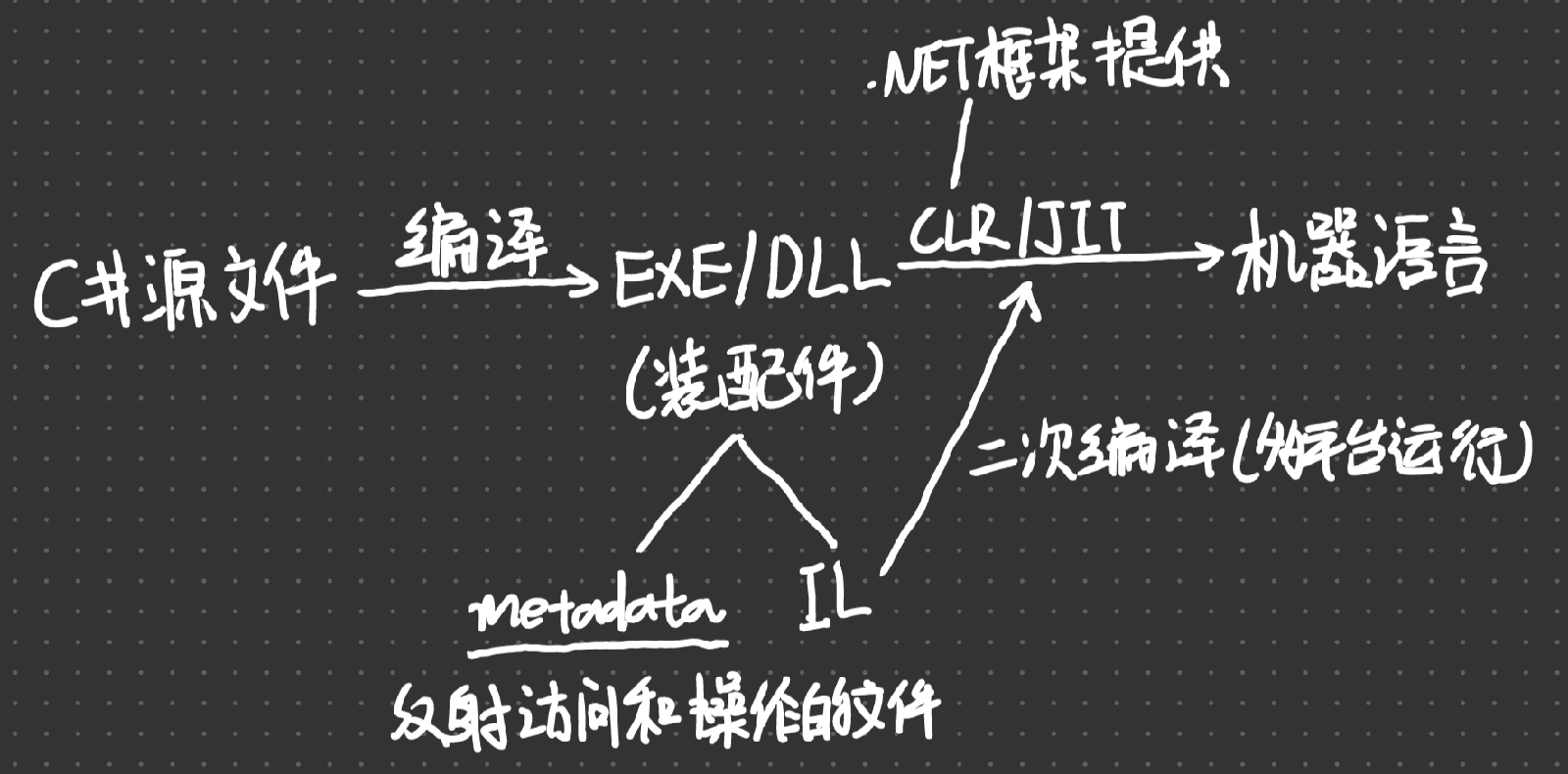 metadata:元数据(编译以后的最基本数据单元)就是一大堆的表,当编译程序集或者模块时,编译器会创建一个类定义表,一个字段定义表,和一个方法定义表等。